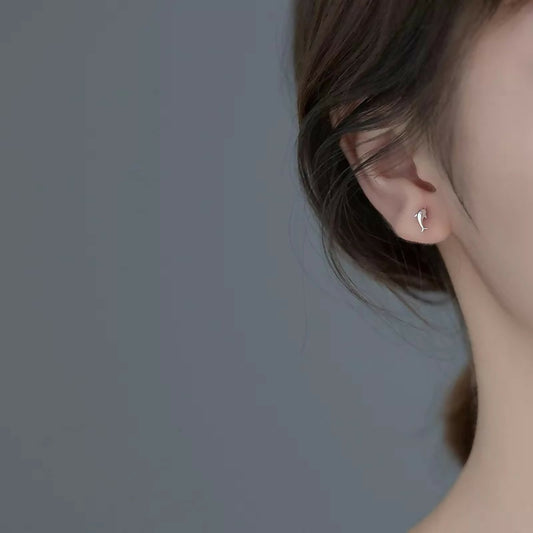ANYCO Fashion Earrings Gold 925 Sterling Simple Glossy Gold Ocean Dolphin Stud for Women Cute Chic Party Piercing Jewelry