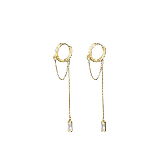 ANYCO Fashion Earrings Gold 925 Sterling Silver Tassel Chain Square Zircon Ear Buckle for Women Jewelry Accessories