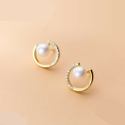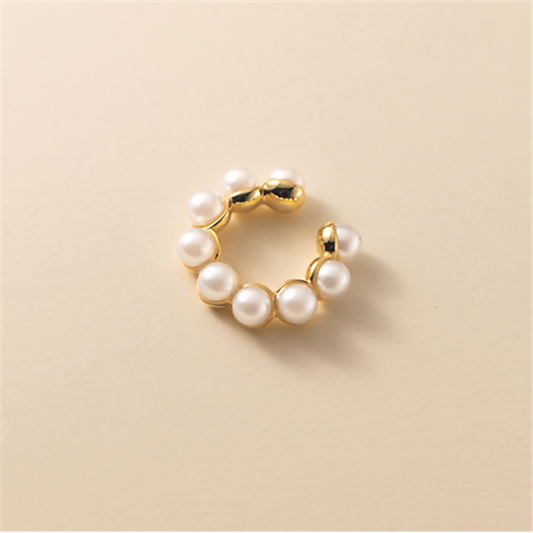 ANYCO Fashion Earrings Gold 925 Sterling Synthetic Pearl Ear Cuff Sweet No Piercing Ear Clip On for Women Jewelry