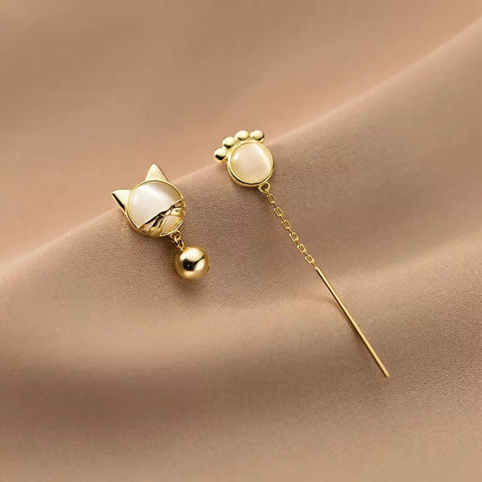 ANYCO Fashion Earrings Gold 925 Sterling Silver Unique Cat Claw Chain Tassel Bell for Women Cute Cat Jewelry