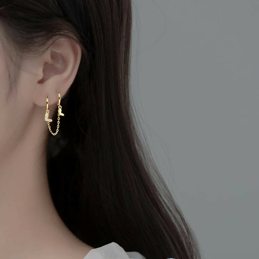 ANYCO Fashion Earrings Gold 925 Sterling Silver Unique Love Heart Chain Charm for Women Bohemian Fine Party Ear Buckle Jewelry
