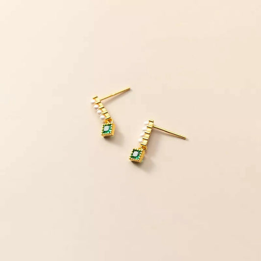 ANYCO Fashion Earrings Gold 925 Sterling Simple Luxury Green Zircon Pearl Pendant Stud for Women Spanish Wedding Fine Jewelry