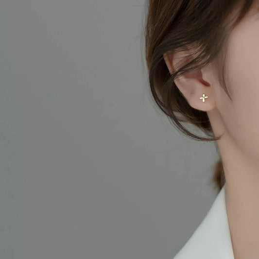 ANYCO Fashion Earrings Gold 925 Sterling Simple CZ Zircon Classic Cross Four Petal Flower Stud for Women Teen Birthday Jewelry Gift