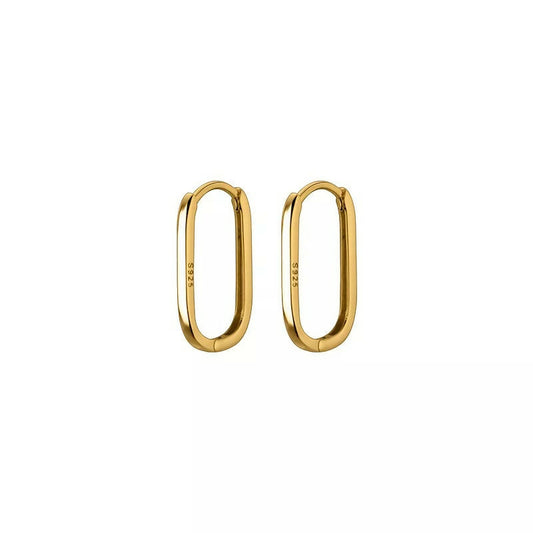 ANYCO Fashion Earrings Gold 925 Sterling Simple Oval Glossy Huggies Ear Buckle for Women Bohemian piercing Jewelry