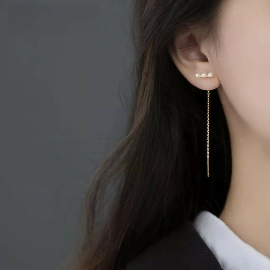 ANYCO Fashion Earrings Gold 925 Sterling Simple Synthetic Pearl Chain Tassel Long Ear Line for Women Cute Party Jewelry Gift