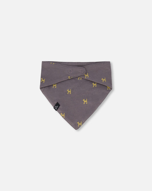 Organic Cotton Bib Dark Grey With Printed Pixel Dog
