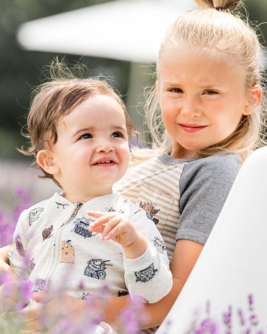 Organic Cotton One Piece Pajama Heather Beige Printed Monsters