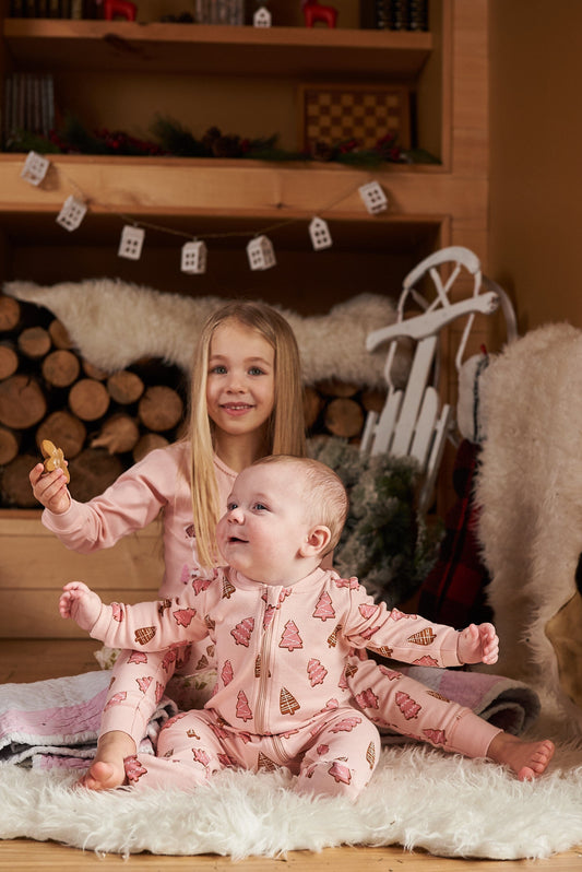 Organic Cotton One Piece Pajama Pink Christmas Cookies