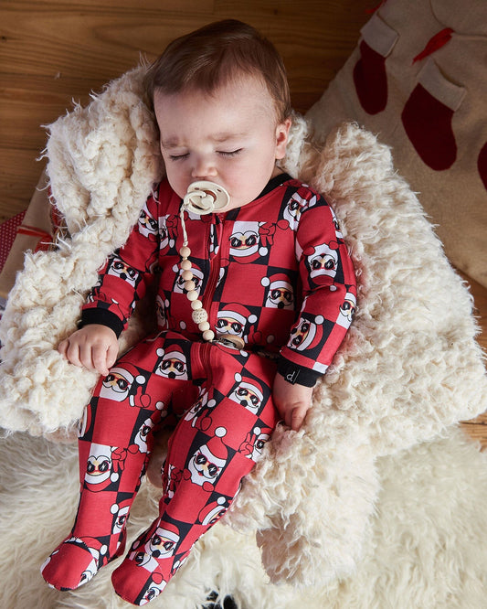 Organic Cotton One Piece Pajama Red Printed Santa