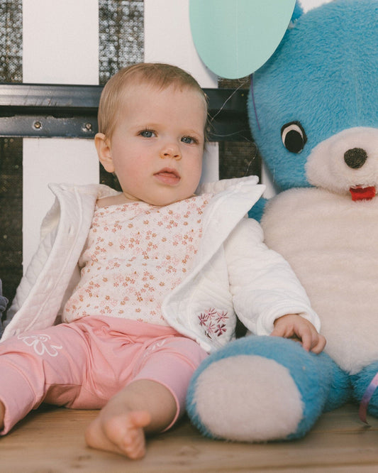Organic Cotton Pointelle Romper Printed White And Pink Flowers