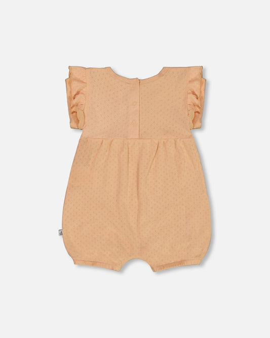 Organic Cotton Pointelle Romper With Frills Beige
