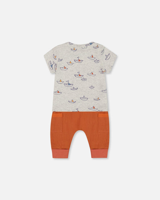 Organic Cotton Top And Muslin Pant Set Little Paper Boats And Terracotta