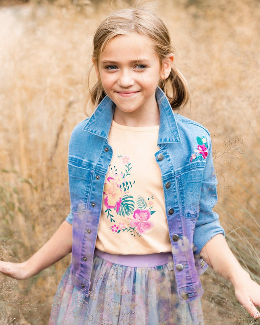 Organic Cotton Tee Light Orange And Flowers