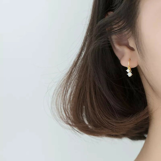 ANYCO Fashion Earrings Gold Sterling Cute Opal Zircon Chic Mini Small Stud Women Simple Ear Bone Piercing Jewelry