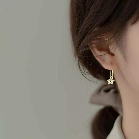 ANYCO Fashion Earrings Gold Romantic Tassel Hollow Shiny Zircon Star Cute Charm Pendant Jewelry for Women