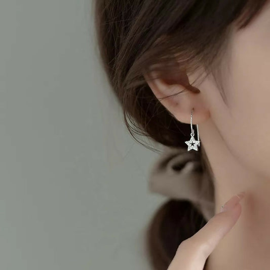 ANYCO Fashion Earrings Real Genuine Sterling Silver Romantic Tassel Hollow Shiny Zircon Star Cute Charm Pendant Jewelry for Women