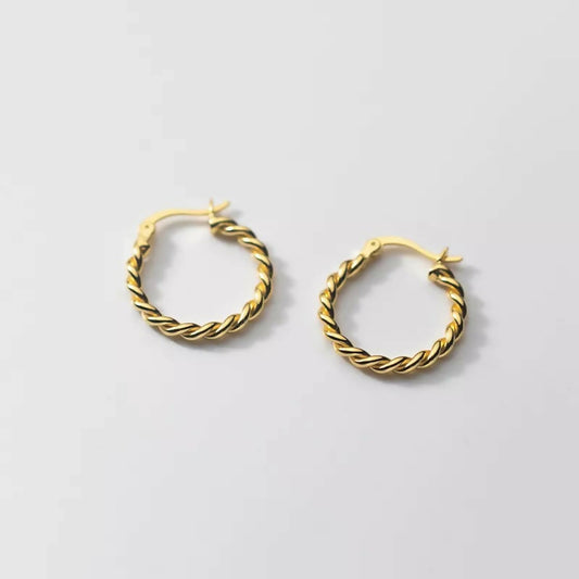 ANYCO Fashion Earrings Gold Twisted Circle for Women 925 Sterling Minimalist Punk Bohemian Huggies Jewelry Female