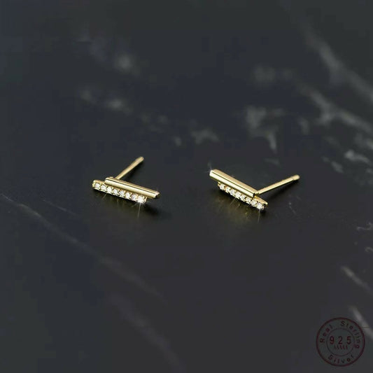 ANYCO Fashion Earrings Gold Strip Shiny Zircon Small Stud Simple Unique Elegant Party Jewelry for Women