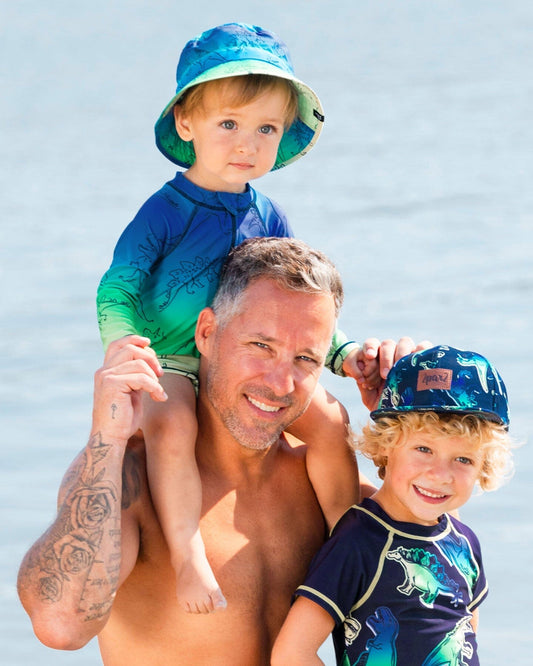 Printed Long Sleeve One-Piece Rashguard Vibrant Blue And Green Dino
