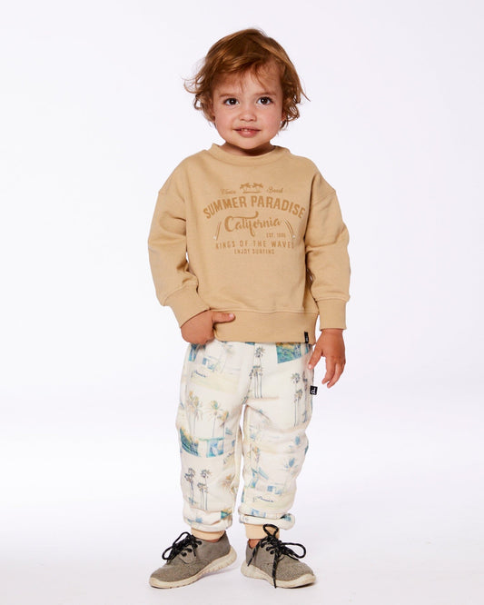 Printed Jogger Sweatpants Beige Palm Tree And Teal
