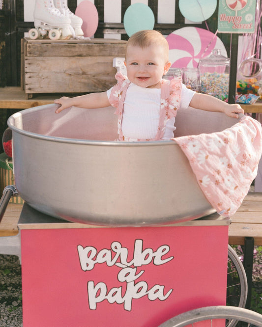 Printed Muslin Short And Organic Cotton Bodysuit Set Pink And White Flowers
