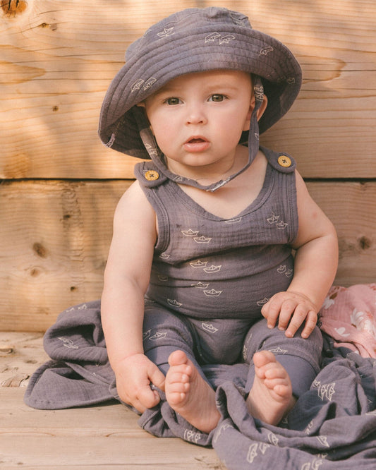 Printed Muslin One-Piece Jumpsuit Navy Blue Paper Boats