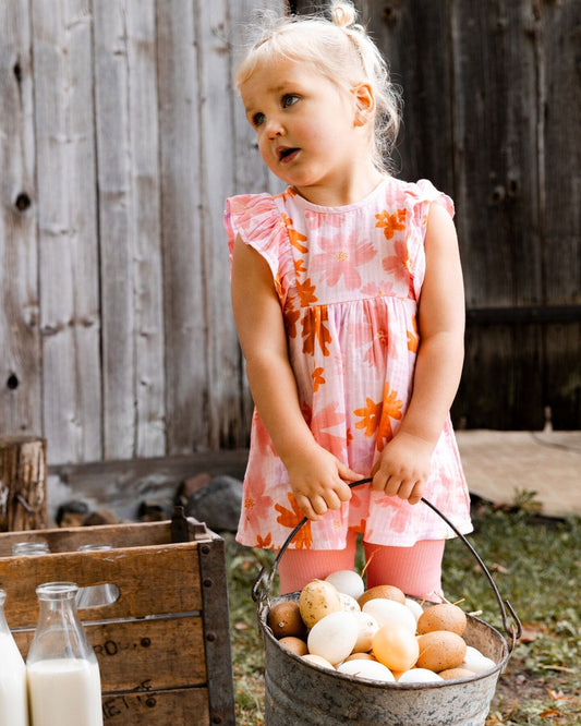Printed Tunic And Solid Leggings Set Pink And Coral Flowers