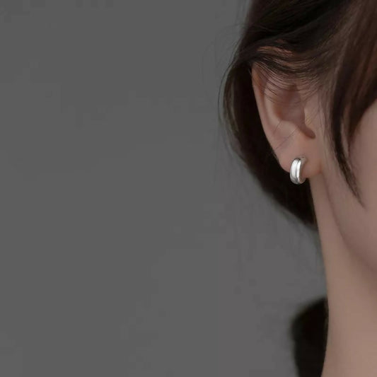ANYCO Fashion Earrings Silver 925 Sterling Minimalist Punk Plated 18k Glossy Huggies for Women Men Jewelry