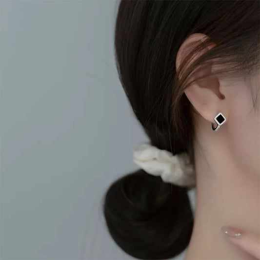 ANYCO Fashion Earrings Silver 925 Sterling Black Luxury Zircon Simple Square Small Stud for Women Jewelry