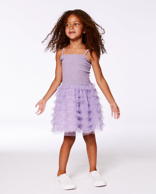 Smocked Dress With Frilled Mesh Skirt Old Mauve