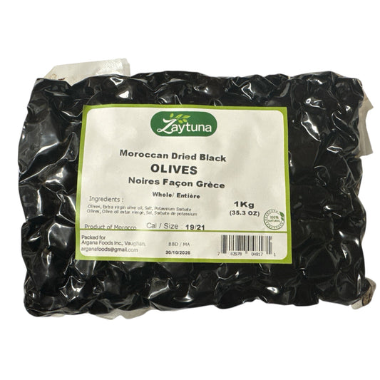 Zaytuna Moroccan Dried Black Olives – 1 kg (Large Size 19/21)