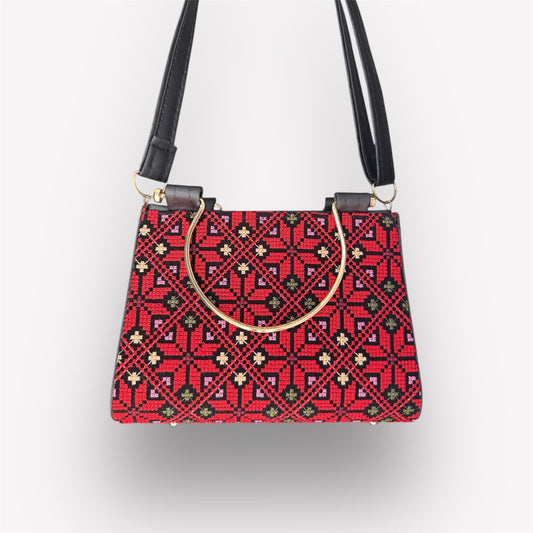 Small Tatreez Purse – Golden Handle with Optional Shoulder Strap