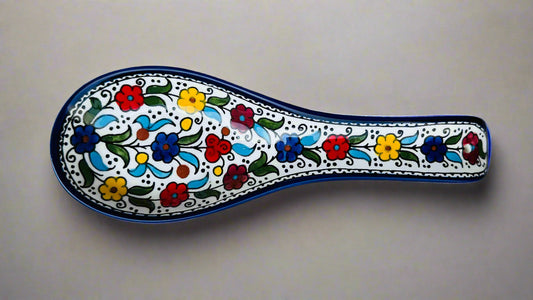 Spoon Rest – Hand-Painted Palestinian Ceramic | Multicolor & Navy