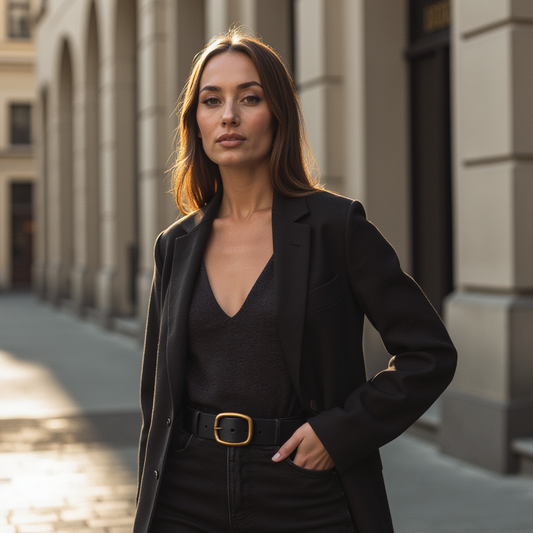 Amara - Black Leather Dress Belt with Gold Buckle - Made in Canada