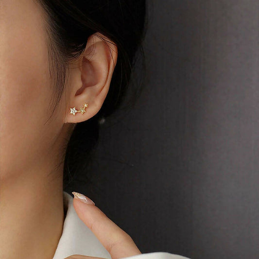 ANYCO Earrings Sterling Silver Screw Beads Chic Gold Star Zircon Stud For Women Girl Teen Fashion Stylish Accessories Jewelry Gifts