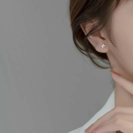 ANYCO Fashion Earrings 925 Sterling Silver Simple CZ Zircon Classic Cross Four Petal Flower Stud for Women Teen Birthday Jewelry Gift