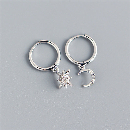 ANYCO Earrings Sterling Silver Creative Asymmetric Star Moon Ear Stud For Women Girl Fashion Stylish Rock Punk Accessories Jewelry Gifts