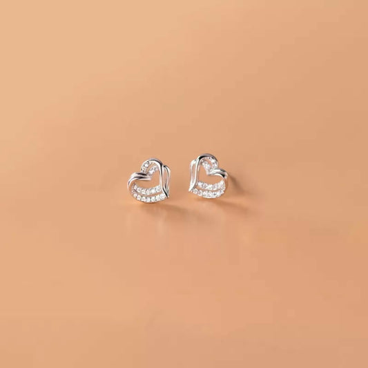 ANYCO Fashion Earrings 925 Sterling Silver Hollow Double Love Heart Stud for Women Romantic Wedding Girlfriend Jewelry Gift