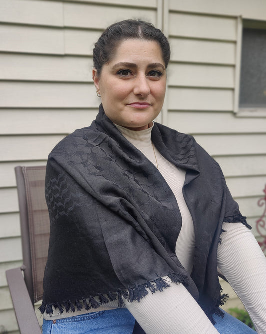 Elegant All Black Kufiya (Keffiyeh) | Made in Kashmir