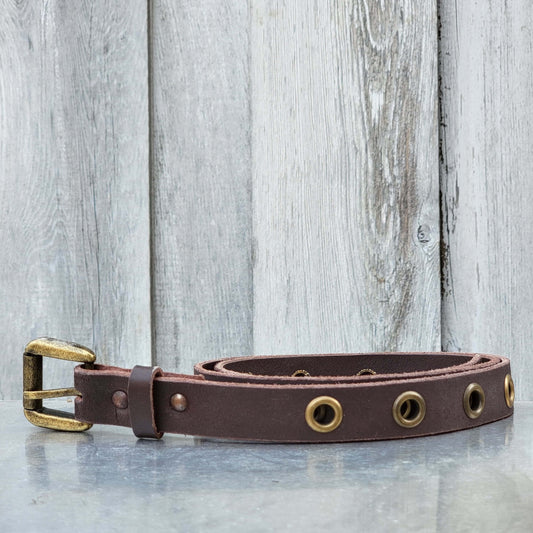 Exene - Slim Brown Leather Belt with Single Grommets - Made in Canada