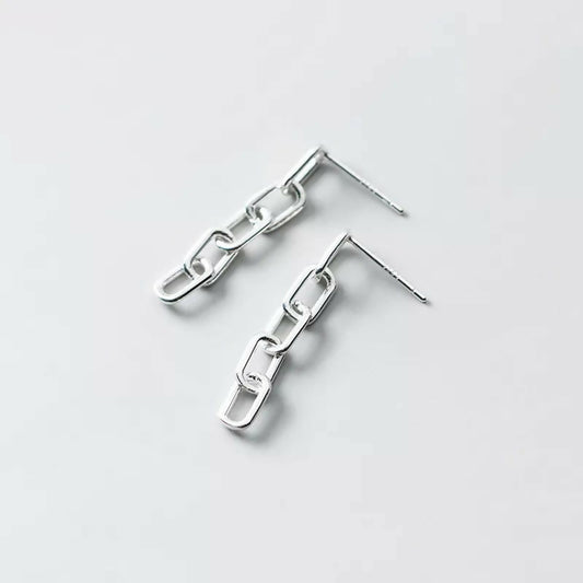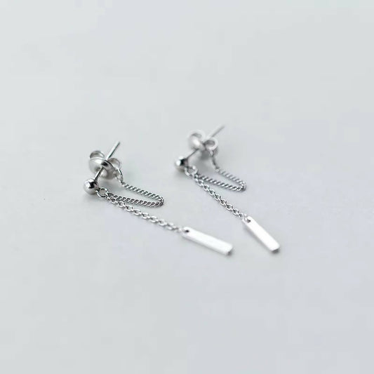 ANYCO Fashion Earrings Genuine Sterling Silver Bohemian Link Chain Bead Stud Chic Classic Party Jewelry Gift for Women