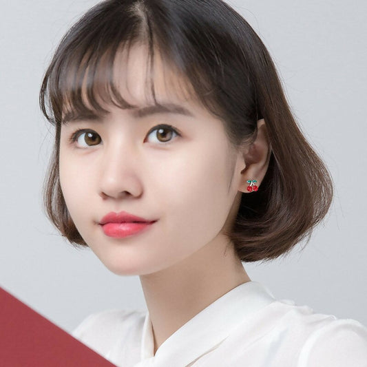 ANYCO Fashion Earrings Genuine Sterling Silver Romantic Sweet Red Zircon Cherry Fruit Studs For Girls Accessory Jewelry