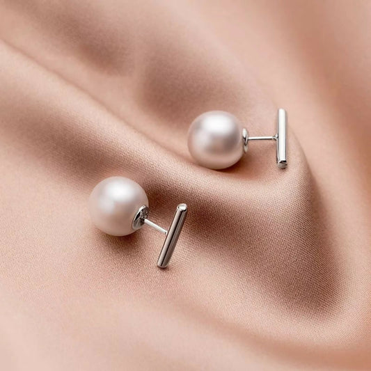 ANYCO Fashion Earrings GenuineSterling Silver Round Baroque Pearl Stick Stud Earrings for Women Chic Elegant Party Wedding Jewelry Gift