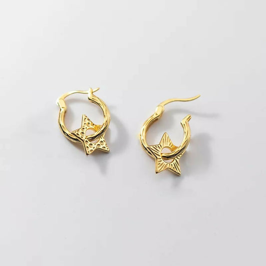 ANYCO Fashion Earrings Gold 925 Sterling Punk Personality Circle Star Pendant for Women Bohemian Fine 18k Jewelry