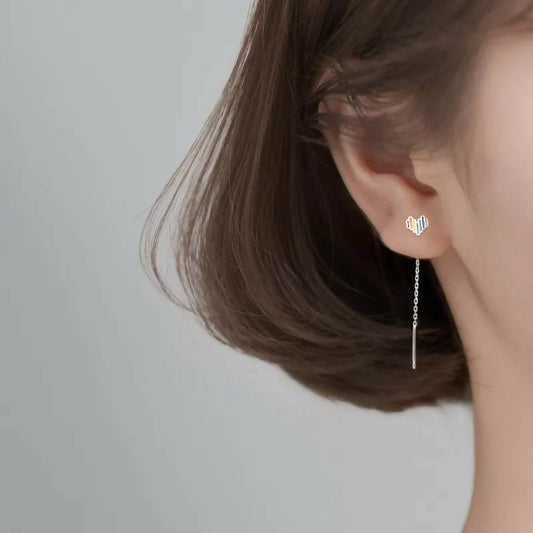 ANYCO Fashion Earrings Genuine Sterling Silver Sweet Lovely Colorful Love Heart Tassel Stud for Women Teen Chic Ear Line Jewelry