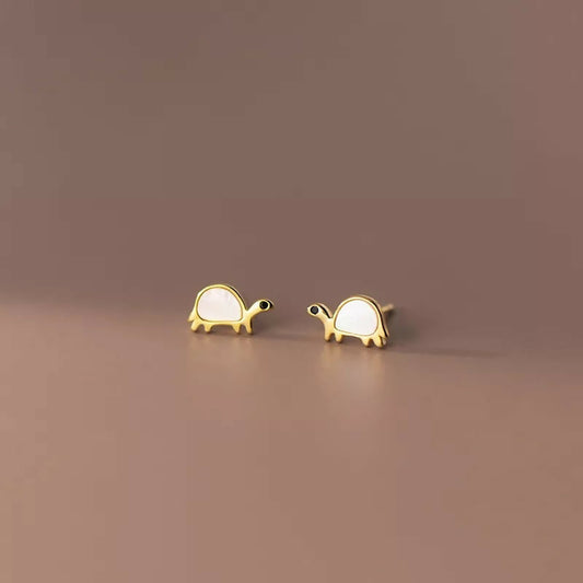 ANYCO Fashion Earrings Gold 925 Sterling Cute Zootopia Shell Turtle Small Stud for Women Chic Jewelry Kid Gift