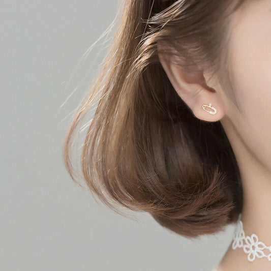 ANYCO Fashion Earrings Chic Small Pave Zircon Paper Clip Pin Stud Genuine Sterling Silver Jewelry Gift for Women