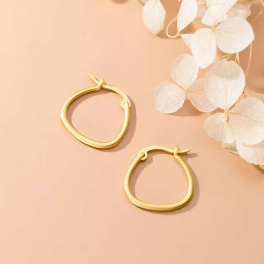 ANYCO Fashion Earrings Genuine Gold Minimalist Golden Line Geometric Stud Earrings Hoop Jewelry Gift for Women