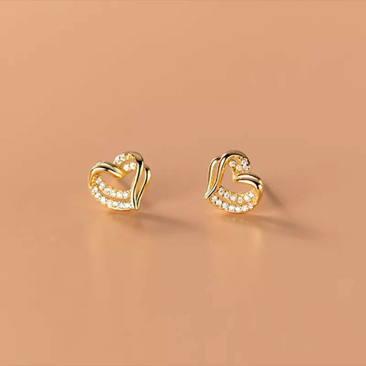 ANYCO Fashion Earrings Gold 925 Sterling Hollow Double Love Heart Stud for Women Romantic Wedding Girlfriend Jewelry Gift
