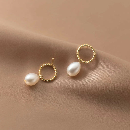 ANYCO Fashion Earrings Gold 925 Sterling Silver Hoop Twist Hanging Natural Baroque Pearl Drop for Women Classic Charms Party Jewelry